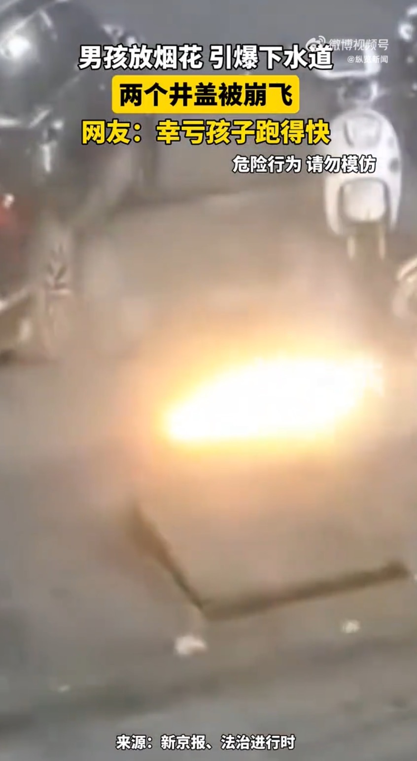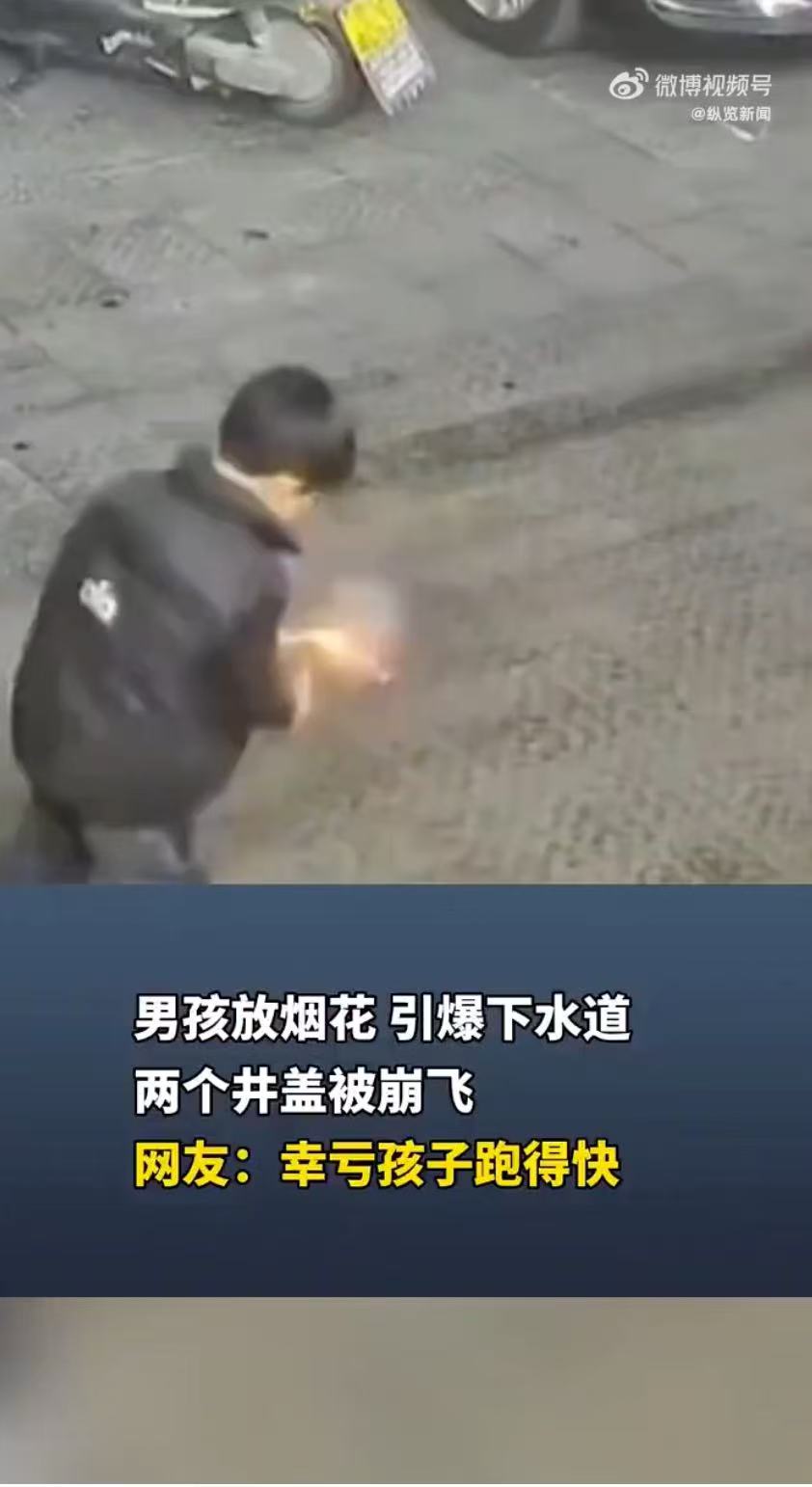 12 月 17 日(报道时间),贵州发生一起惊险事件:一名男孩在下水道井盖旁燃放烟花,烟花火星引燃下水道内积聚的沼气,引发剧烈爆炸,两个井盖被瞬间崩飞,其中一个井盖径直落在旁边停放的汽车旁,万幸的是男孩反应迅速及时跑开,未造成人员伤亡,网友纷纷感慨 “幸亏跑得快,躲过一劫”。