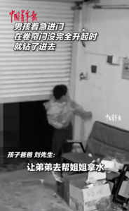 江苏常州一男童钻过未升起卷帘门,被门钩“挂起”引发关注