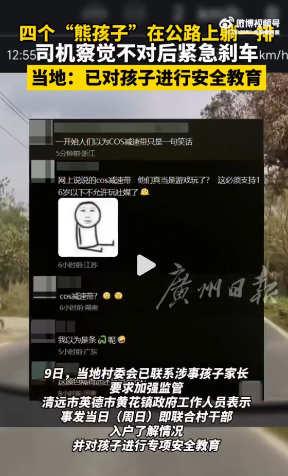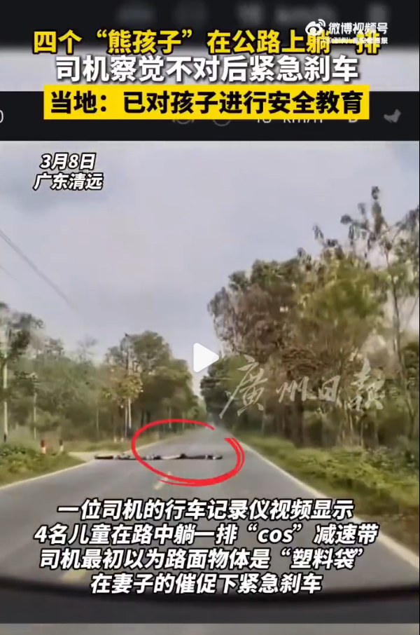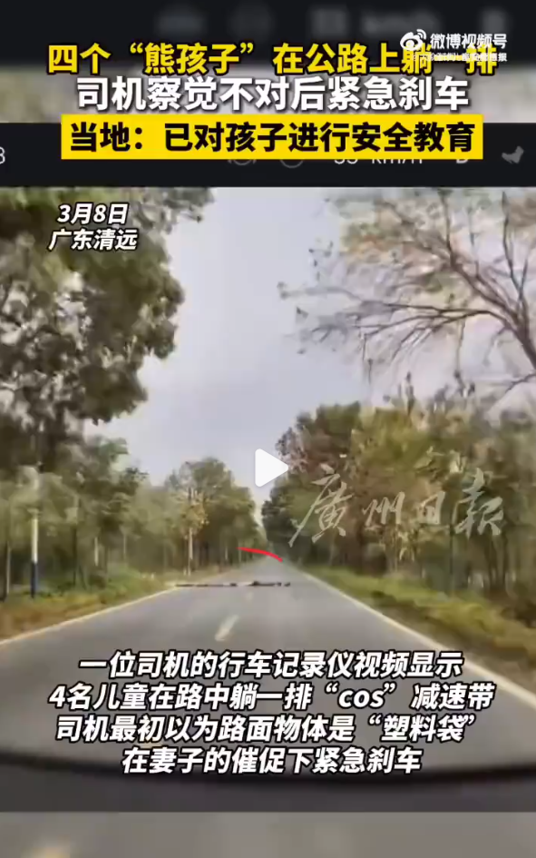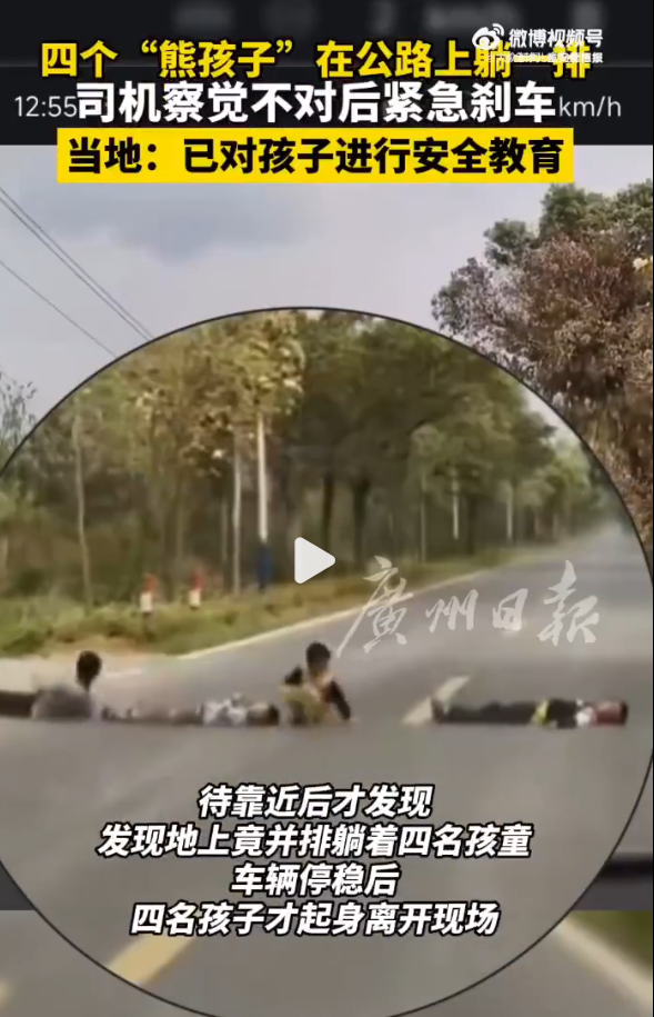 孩子把马路当游戏场,躺成一排“扮减速带”,司机紧急刹车才避免悲剧!交通安全不是儿戏,每一次侥幸都可能付出生命的代价。家长请务必加强日常安全教育,告诉孩子马路不是玩耍的地方,车辆有盲区,危险随时可能发生!