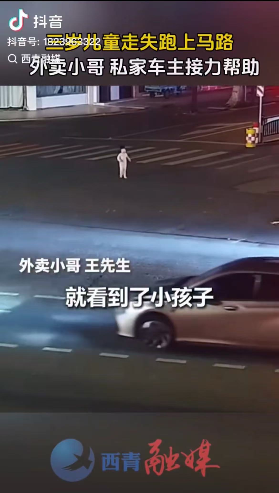 三岁儿童走失跑上马路,外卖小哥私家车主接力帮助