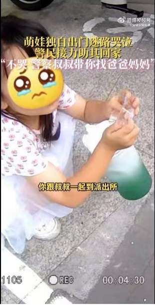 走失女童见到爸爸后喜极而泣