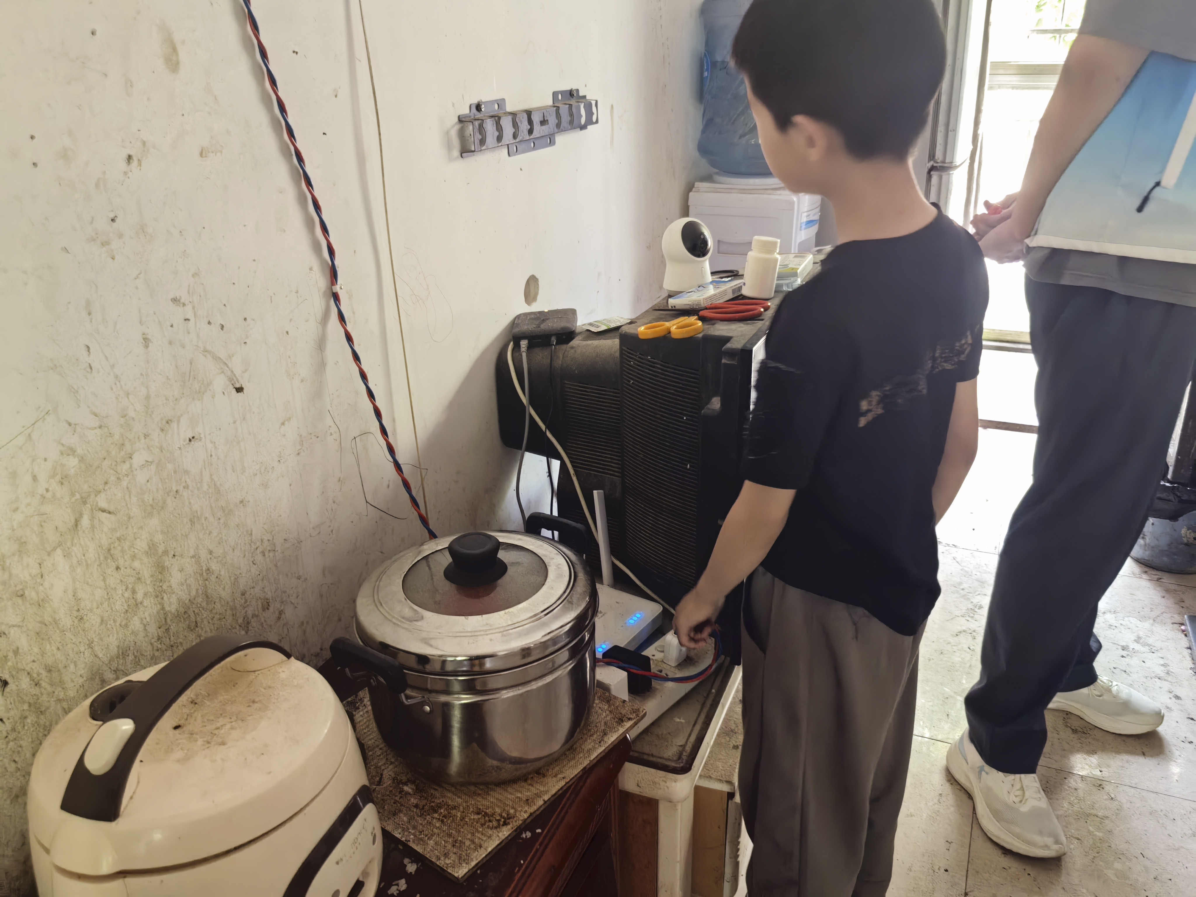 道真阳光社工于2025年8月10日组织社工和志愿者入户困境儿童家庭,帮助儿童家庭,排查家庭的用电危险,上图居家使用的电源插板,超负荷使用,会引发火灾,电源放在儿童能够拿到的地方,会砸到儿童受伤