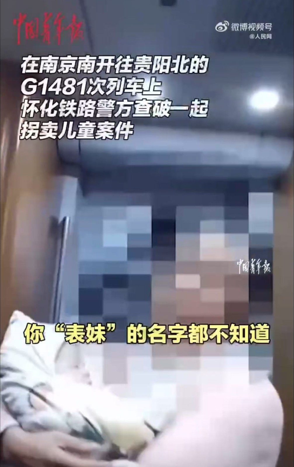 近日,在南京南开往贵阳北的G1481次列车上,怀化铁路警方查破1起拐卖儿童案件。一名独自带娃的中年女子神色慌张。经乘警盘问,发现她不认识“表妹”却微信转账2万,婴儿的户口本或者出生证明也拿不出来。目前,婴儿已被送回母亲身边,犯罪嫌疑人被警方依法采取强制措施,案件正在进一步侦办中。