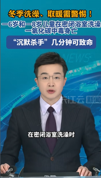 近日一则安全警示视频引发关注:两名年幼儿童(6岁与8岁)在密闭浴室洗澡时发生一氧化碳中毒,最终酿成悲剧。视频提醒,冬季洗澡、取暖用气量上升,密闭空间叠加燃气设备使用不当,一氧化碳这个“沉默杀手”可能在短时间内致命,一定要提高警惕。