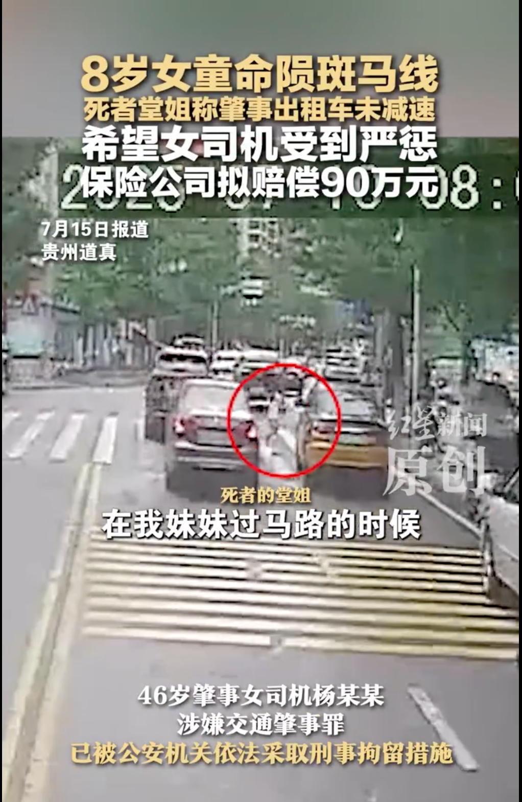 8岁女童过斑马线被撞身亡,司机被刑拘